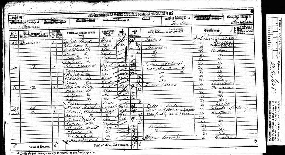 | 18 | 1871-2 | Thomas | Houseman | Head | 1825 | Menwith with Darley, Yorkshire | 65 | Male | Married | | | | Farmer of 130 acres | | | | | | 19 | 1871-2 | Hannah | Houseman | Wife | 1830 | Birstwith, Yorkshire | 41 | Female | Married | | | | | | | | | | 20 | 1871-2 | Thomas James | Houseman | Son | 1853 | Birstwith, Yorkshire | 17 | Male | Unm | | | | | | | | | | 21 | 1871-2 | Elizabeth Anne | Houseman | Daughter | 1858 | Birstwith, Yorkshire | 12 | Female | | | | | | | | | | | 22 | 1871-2 | Francis William | Houseman | Son | 1863 | Birstwith, Yorkshire | 7 | Male | | | | | Scholar | | | | | | 23 | 1871-2 | Charles | Houseman | Son | 1865 | Birstwith, Yorkshire | 5 | Male | | | | | Scholar | | | | | | 24 | 1871-2 | Frederic George | Houseman | Son | 1867 | Birstwith, Yorkshire | 3 | Male | | | | | | | | | |