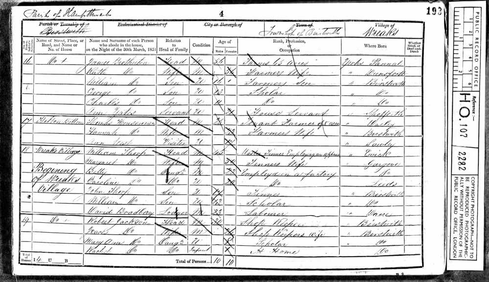 | UK Census - April 1861 - Elton Bottom, Birstwith, Yorkshire |