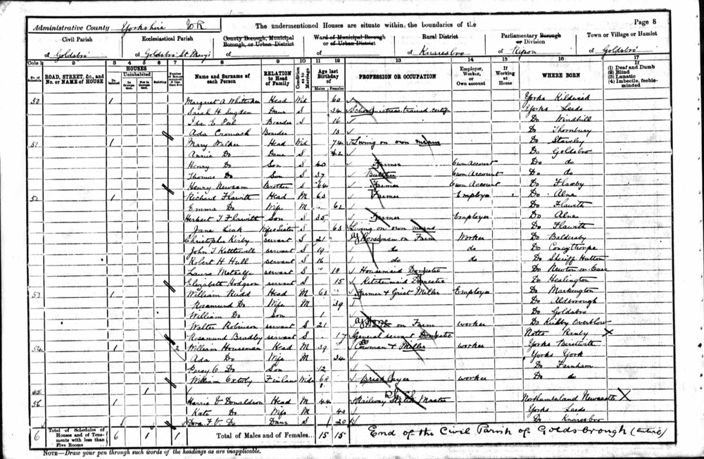 | UK Census - March 1901 - Goldsborough, Knaresborough, Yorkshire |