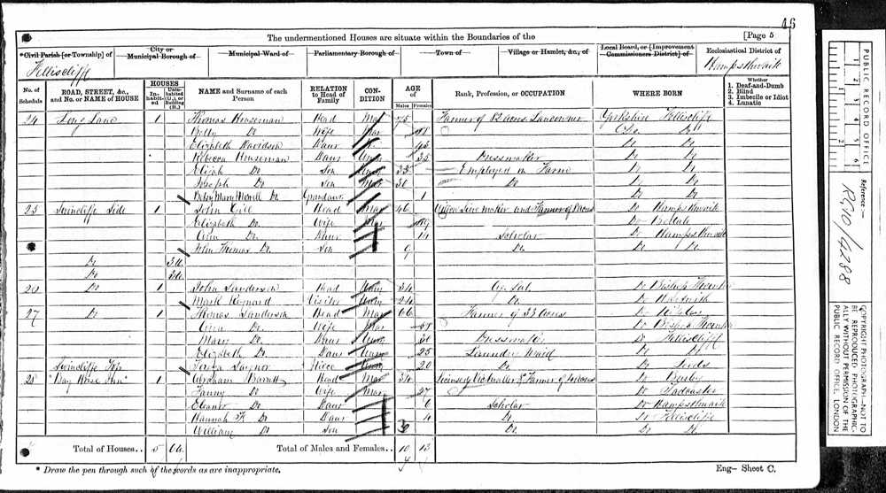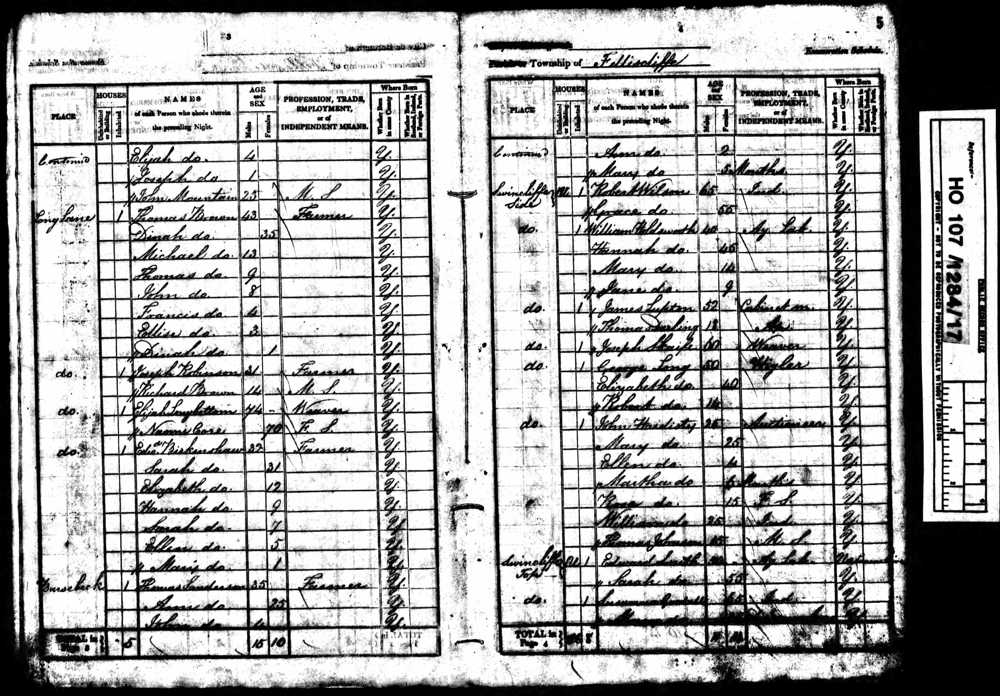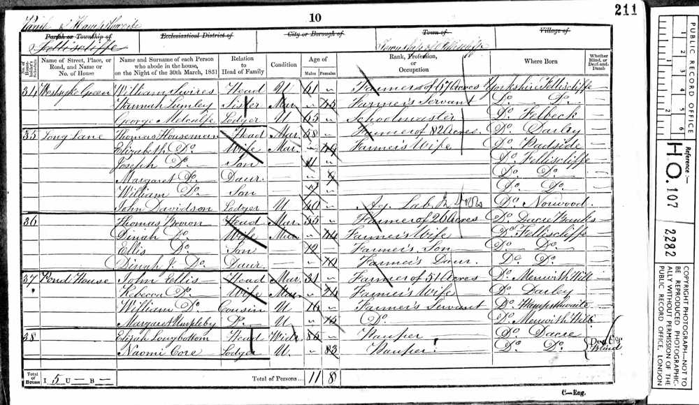 | UK Census - March 1851 - Long Lane Farm, Felliscliffe, Yorkshire |