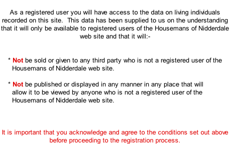 Click on this checkbox to show that you have read, understood and agree to    the above conditions and then click on the button below. The Housemans of Nidderdale Database User Registration